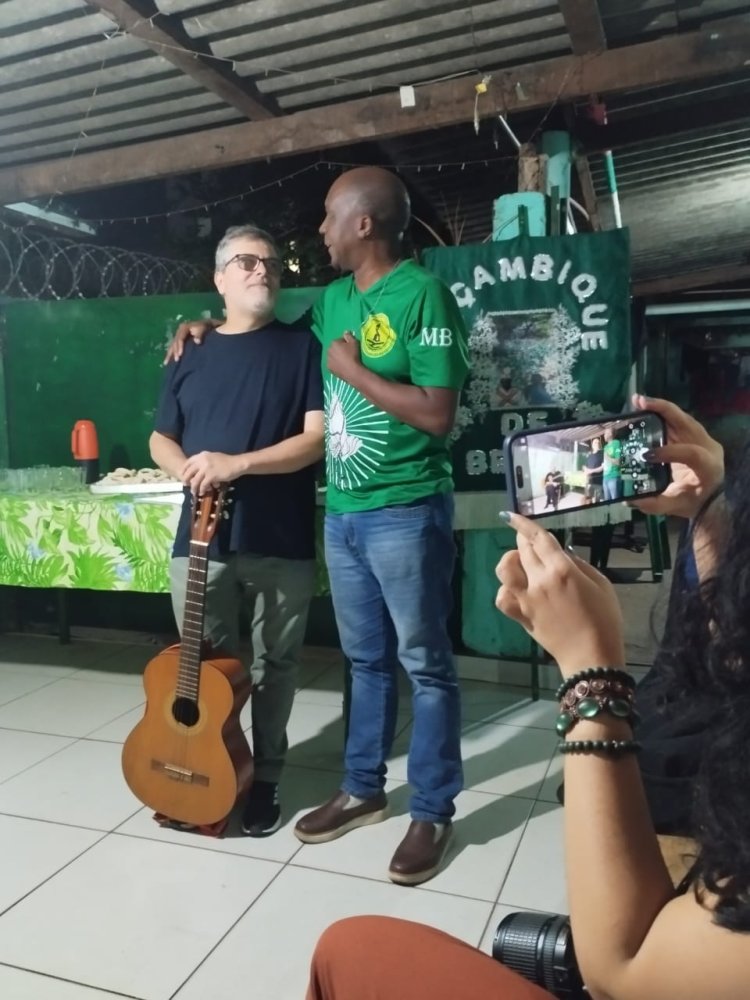 A mesma partilha se repetiu no Congado Moçambique de Belém, liderado por Ramon Rodrigues, que visitamos com o apoio do vereador Igino Marcos da Mata de Oliveira. Este foi um dos momentos mais simbólicos da passagem de Luiz Carlos por Uberlândia. Ali, entre tambores, fitas, ancestralidade negra e fé popular, a história da Coluna Prestes encontrou um terreno inesperado, mas absolutamente coerente com o espírito da marcha: o encontro com o povo.