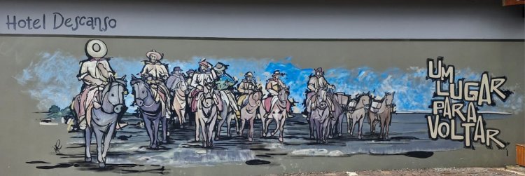 Mural "Coluna Prestes", do artista Neuri Jorge Reolon, na fachada do Hotel Descanso