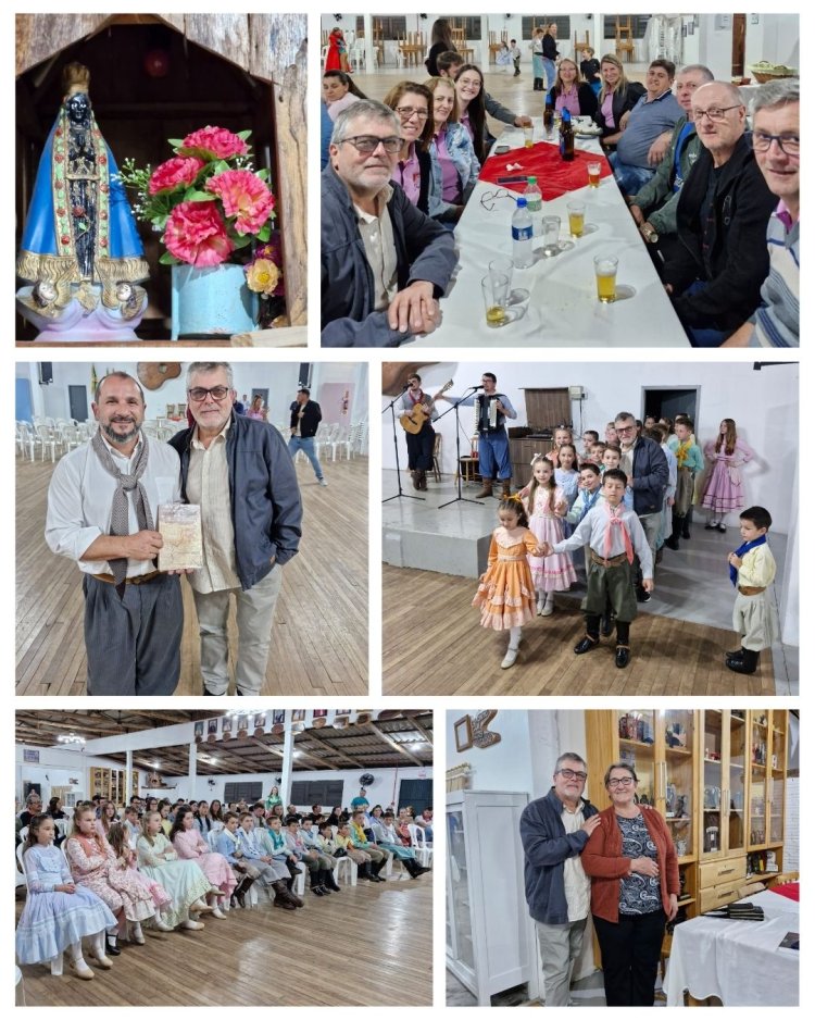 Para fechar a minha visita o Centro de Tradições Gaúchas (CTG) local promoveu uma reunião onde, após ser cumprimentado pelo Patrão Barela, pude conhecer a invernada de crianças, adolescentes e adultos. Recebi das mão de Dirceu Oro, o livro escrito por seu pai, Eliseu Oro “História de Descanso – SC”, no qual o primeiro capitulo é dedicado a Coluna Prestes como o acontecimento fundador de Descanso.