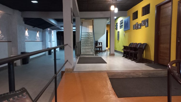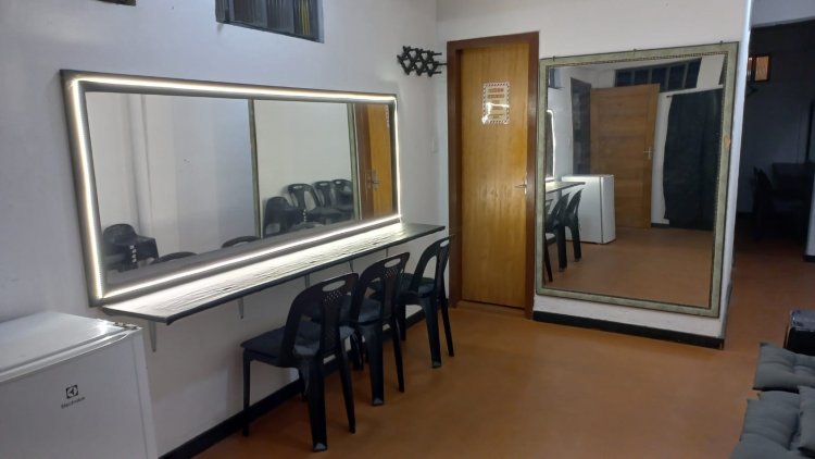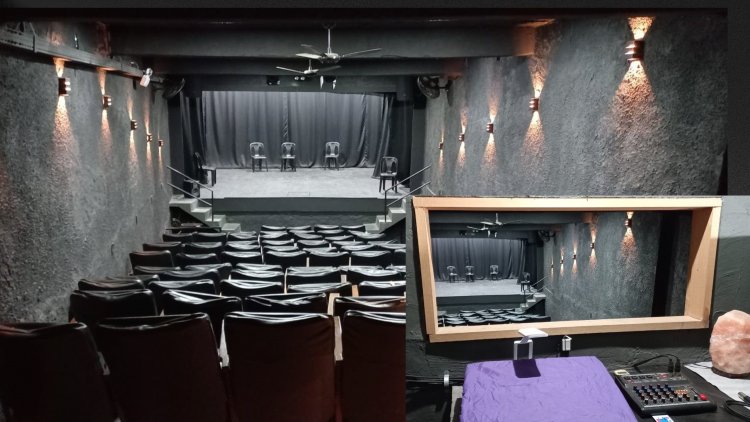 No térreo temos o Teatro Dirceu de Mattos, com 65 poltronas e local para mais 15 cadeiras extras. Tem um bom espaço de convivência na entrada, cantina e acesso para cadeirantes. Está todo equipado com mesas de luz e som, refletores, máquina de fumaça e projetor com telão de 180 polegadas. Ainda no térreo temos o Pátio Infinito, destinado a eventos maiores, festas e afins. No final do pátio será nossa sala de dança (balé e outras). Estamos em ação para que seja realidade ainda neste semestre. Atrás da sala de dança há amplo espaço para, no futuro, criarmos mais três salas, uma no térreo e as outras em dois andares para baixo.