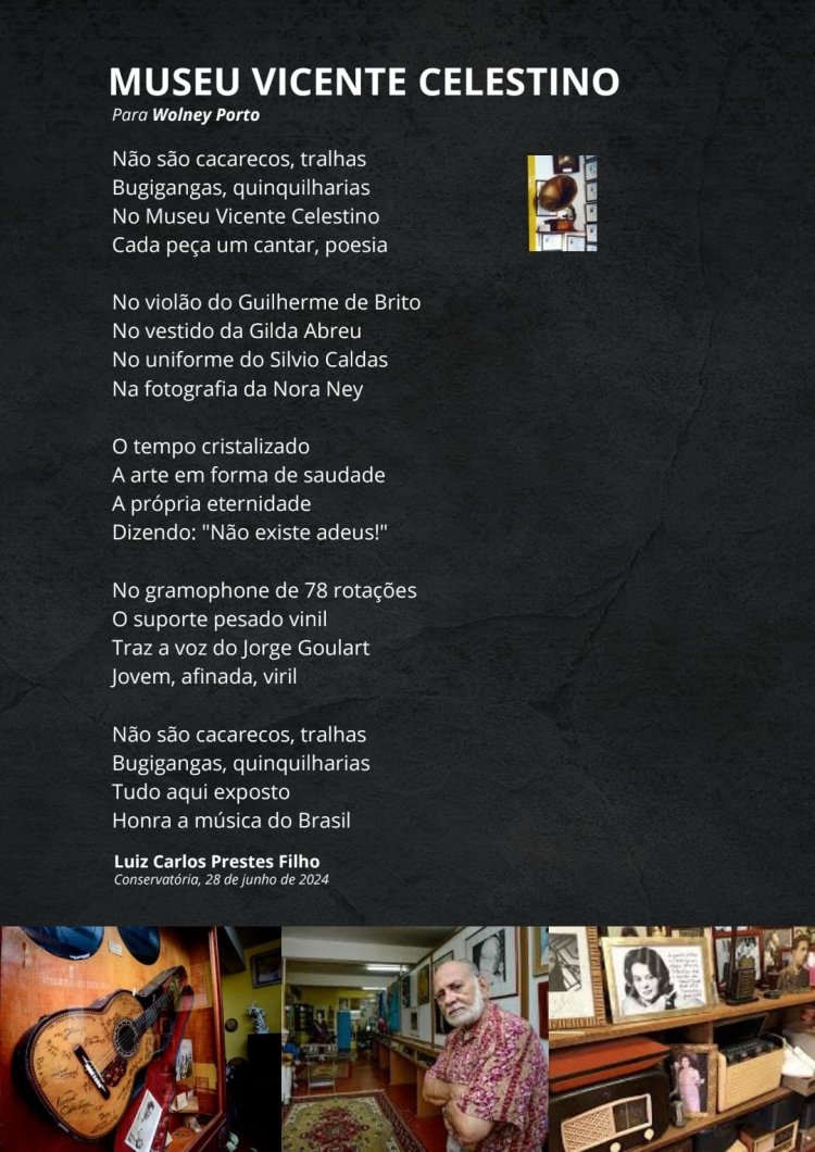 É com o coração batendo no ritmo de uma seresta que escrevo estas linhas. No próximo dia 27 de março, viveremos um momento histórico em Conservatória: a reabertura do Museu Vicente Celestino, totalmente reformado e modernizado. Olhar para esse museu é revisitar a trajetória de muitos amigos. Em especial, do fundador.