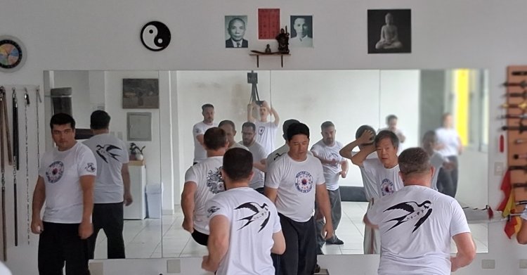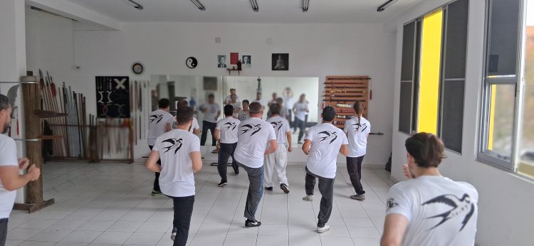 É precisamente neste ponto, que a simbologia da andorinha se torna ainda mais essencial, pois ela atua como princípio equilibrador diante da intensidade do fogo, trazendo suavidade, continuidade e promessa de renascimento após a combustão necessária, ensinando que o fogo que destrói é o mesmo que purifica, e que a verdadeira permanência não está na rigidez, mas na capacidade de adaptação, e assim o Mestre Lee, ao transmitir essa simbologia aos seus discípulos, oferece mais do que uma comemoração, oferece um ensinamento existencial, convidando cada praticante e discípulo a reconhecer seus próprios ciclos internos, suas fases de ascensão e queda, de construção e dissolução, e a atravessá-los com a mesma serenidade com que a andorinha cruza os céus, retornando sempre ao seu ninho, que é o centro do ser, o lugar onde o Tao se manifesta silenciosamente, e nesse sentido o Kung Fu (Gongfu) 功夫 torna-se caminho de iluminação, prática de autoconhecimento, disciplina que integra corpo, mente e espírito em um fluxo contínuo de aperfeiçoamento.