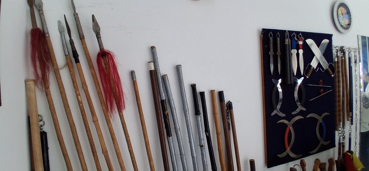 Armas de treino na tradição do Kung Fu (Gongfu) 功夫 Shaolin 少林 (Shàolín), academia Academia Bei Long. Foto: Manoel J de Souza Neto.