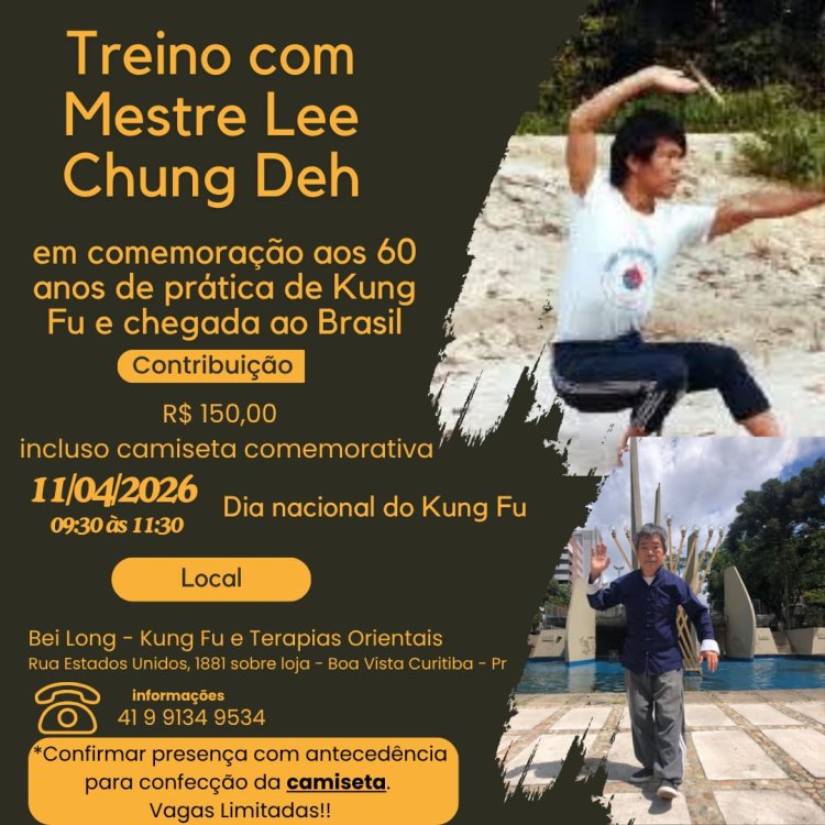 O primeiro movimento dentro da transição de ciclo de 60 anos de Kung Fu do Mestre Lee, realizado na Academia Bei Long do Mestre Alexandre Ribeiro abrindo uma sequência de homenagens, Festivais e aulões que ecoarão pelos territórios onde o Mestre Lee semeou sua linhagem, perpetuando não apenas um estilo de Kung Fu, mas uma ética do corpo e do espírito que atravessa gerações.